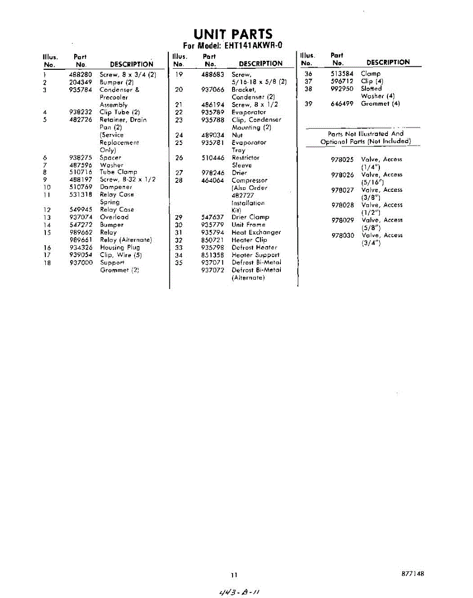 Parts for Whirlpool EHT141AKWR0: 11 - Section Parts