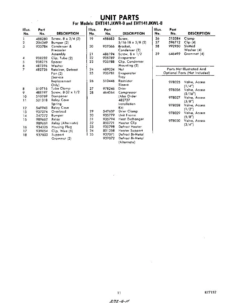 Parts for Whirlpool EHT141JKWR0: 11 - Section Parts