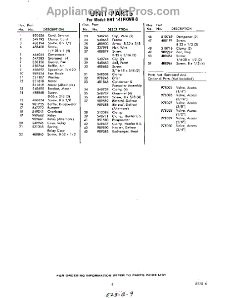 Parts for Whirlpool EHT141PKWR0: 09 - Section Parts