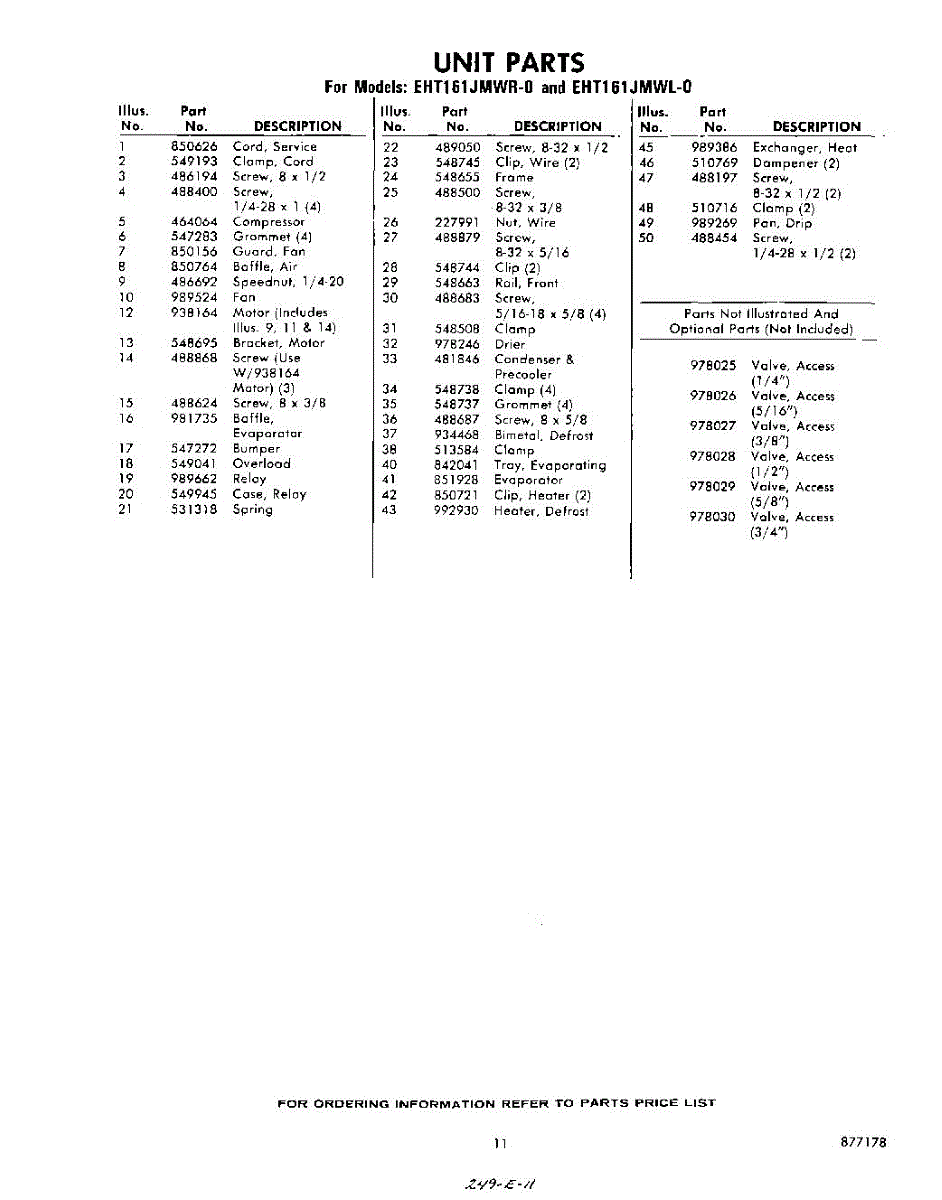 Parts for Whirlpool EHT161JMWR0: 11 - Section Parts