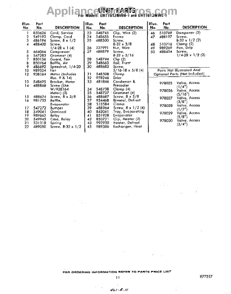 Parts for Whirlpool EHT161JMWR1: 11 - Section Parts