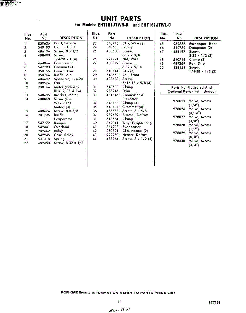 Parts for Whirlpool EHT161JTWR0: 11 - Section Parts