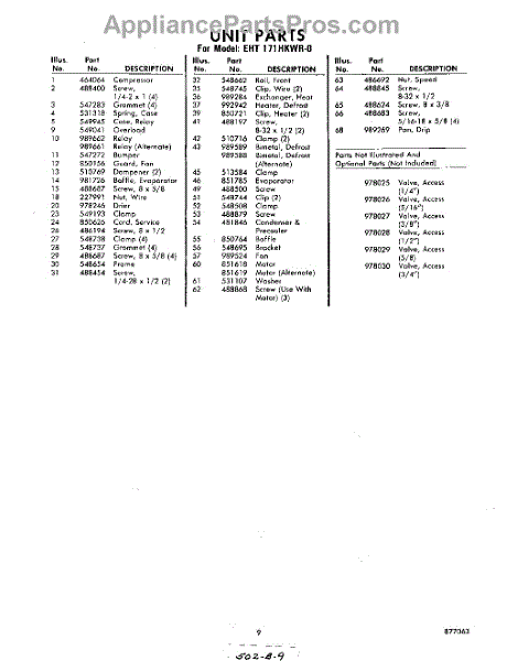Parts for Whirlpool EHT171HKWR0: 09 - Section Parts