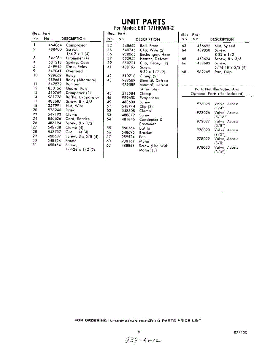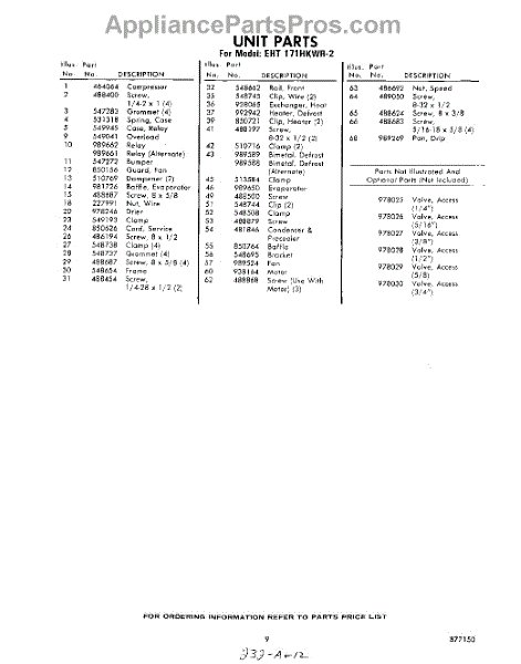 Parts for Whirlpool EHT171HKWR2: 09 - Section Parts