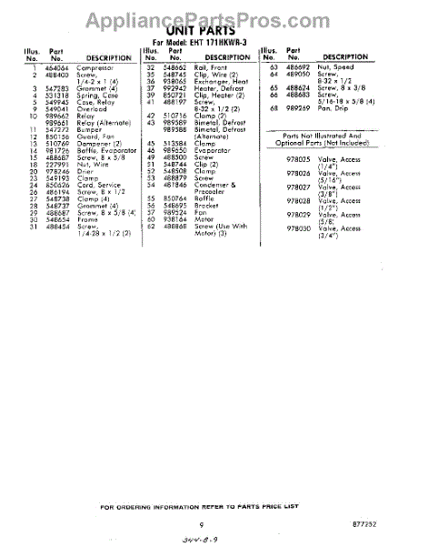 Parts for Whirlpool EHT171HKWR3: 09 - Section Parts