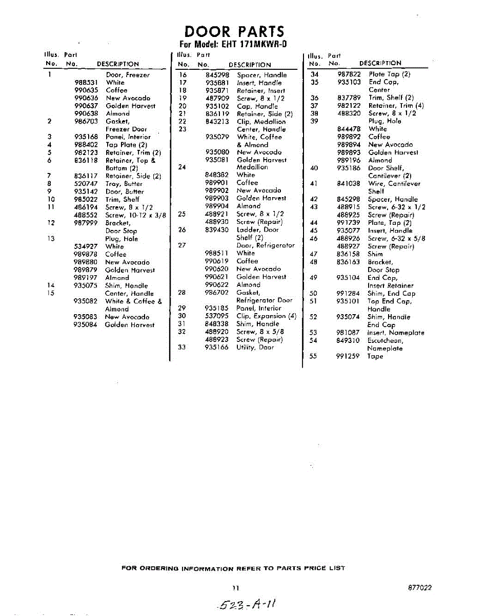 Parts for Whirlpool EHT171MKWR0: 11 - Section Parts