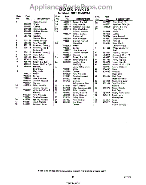 Parts for Whirlpool EHT171MKWR4: 11 - Section Parts