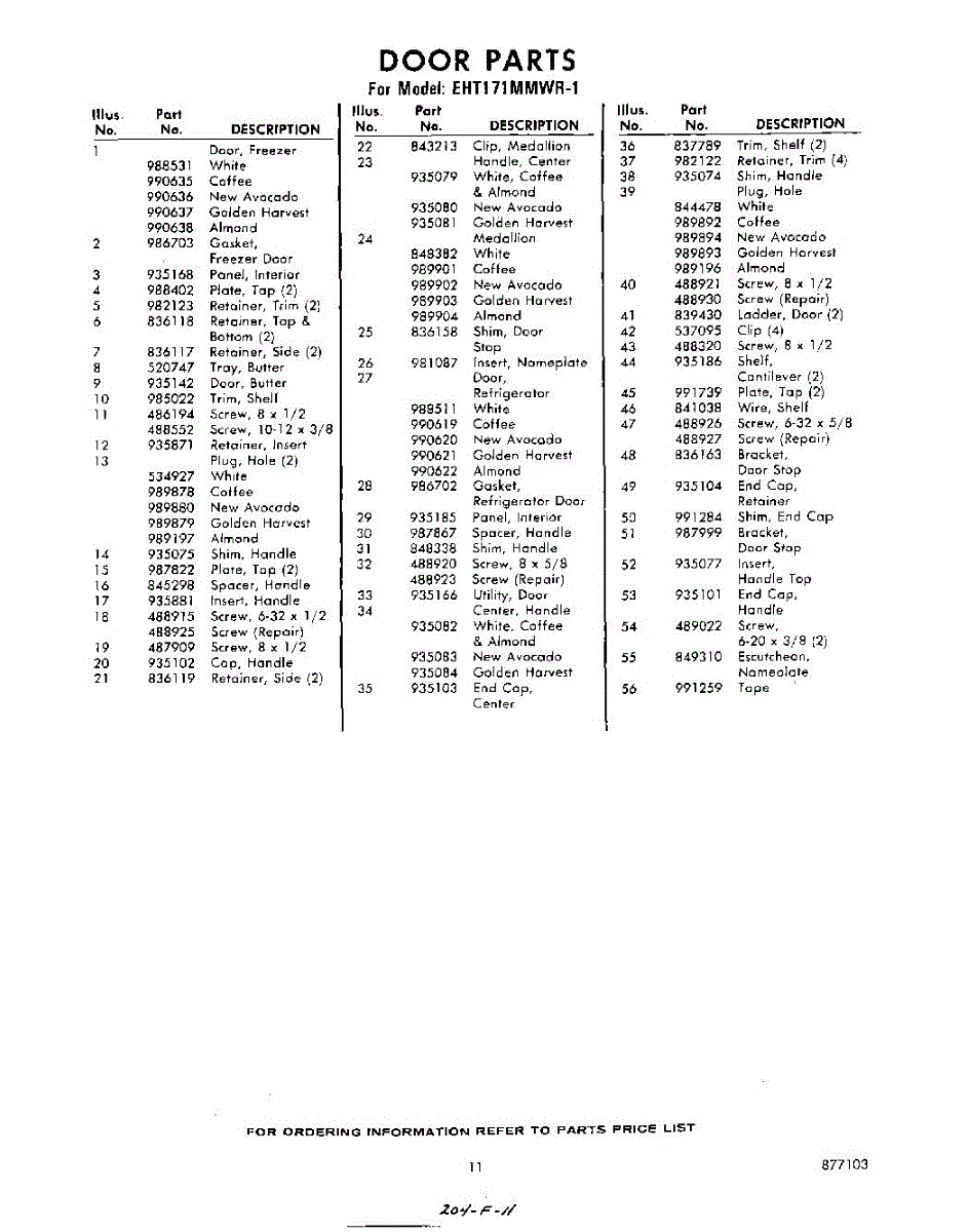 Parts for Whirlpool EHT171MMWR1: 11 - Section Parts