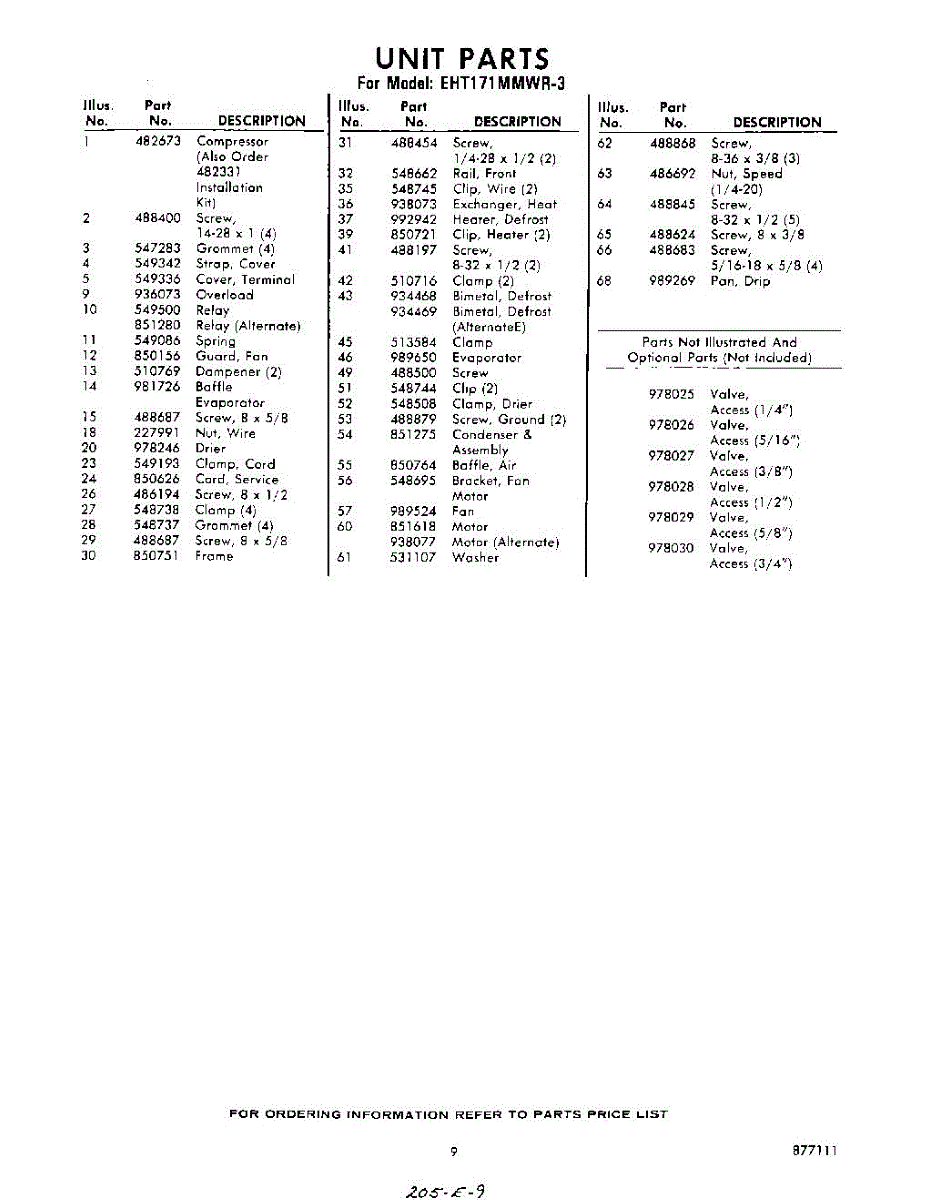 Parts for Whirlpool EHT171MMWR3: 09 - Section Parts