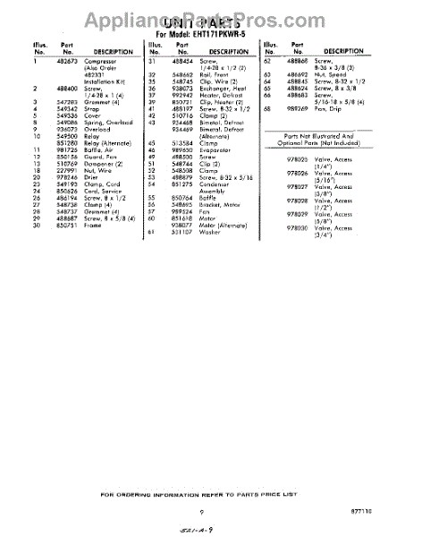 Parts for Whirlpool EHT171PKWR5: 09 - Section Parts