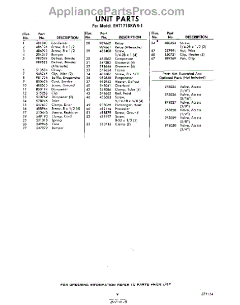 Parts for Whirlpool EHT171SKWR1: 09 - Section Parts