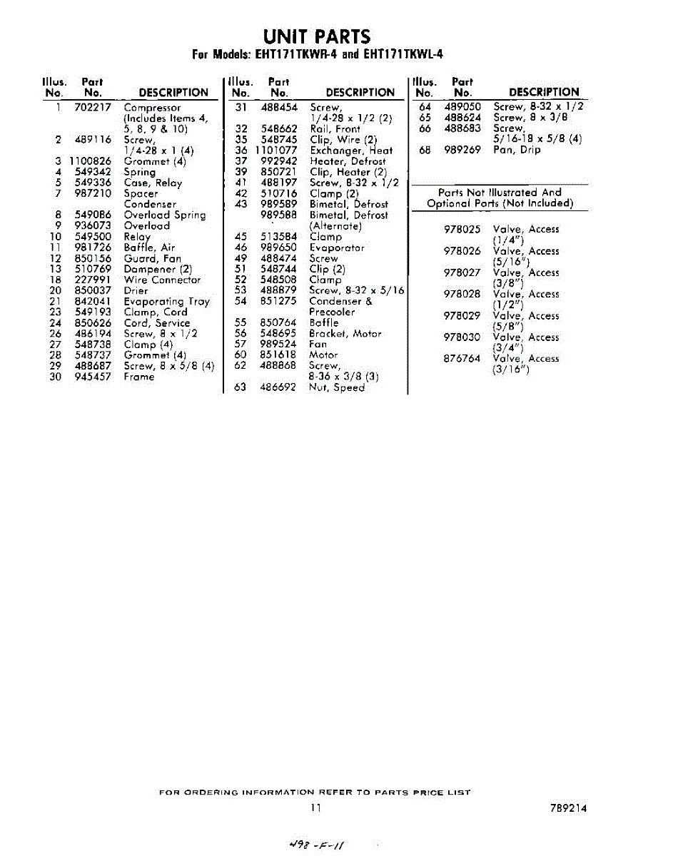 Parts for Whirlpool EHT171TKWR4: 11 - Section Parts