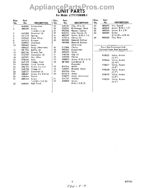 Parts for Whirlpool EHT171XKWR1: 09 - Section Parts