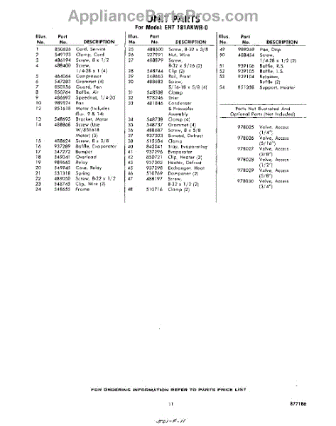 Parts for Whirlpool EHT181AKWR0: 11 - Section Parts