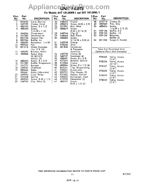 Parts for Whirlpool EHT181JKWR1: 11 - Section Parts