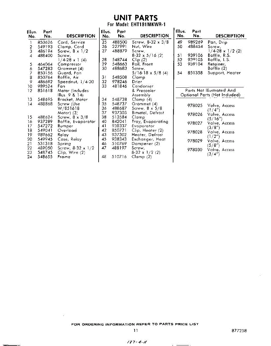 Parts for Whirlpool EHT181MKWR1: 11 - Section Parts