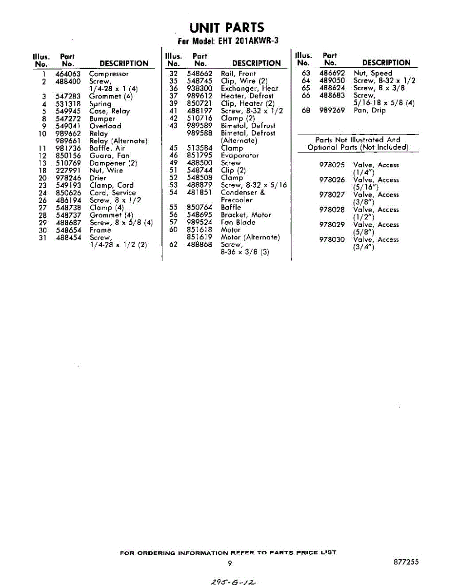 Parts for Whirlpool EHT201AKWR3: 09 - Section Parts