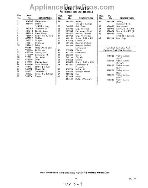 Parts for Whirlpool EHT201MKWR3: 09 - Section Parts