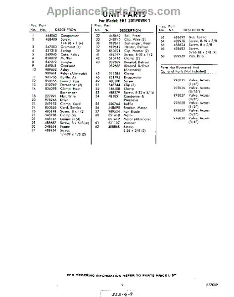 Parts for EHT201PKWR1