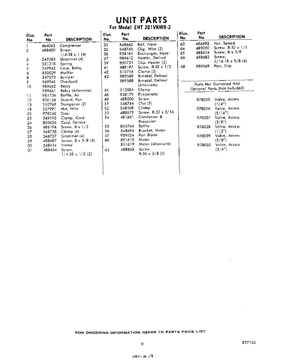 Parts for Whirlpool EHT201VKWR2: 09 - Section Parts