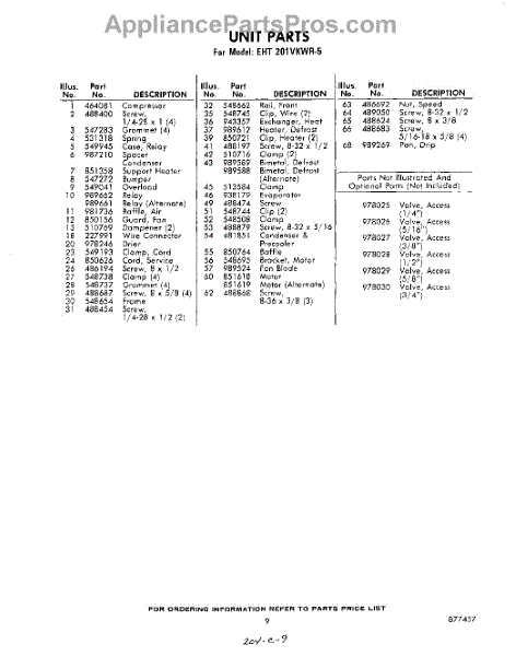 Parts for Whirlpool EHT201VKWR5: 09 - Section Parts