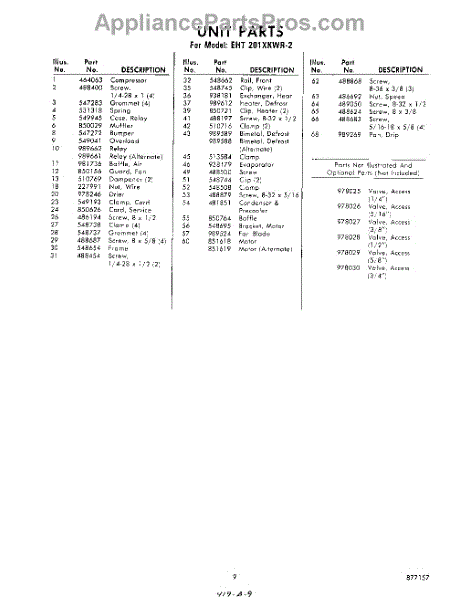 Parts for Whirlpool EHT201XKWR2: 09 - Section Parts