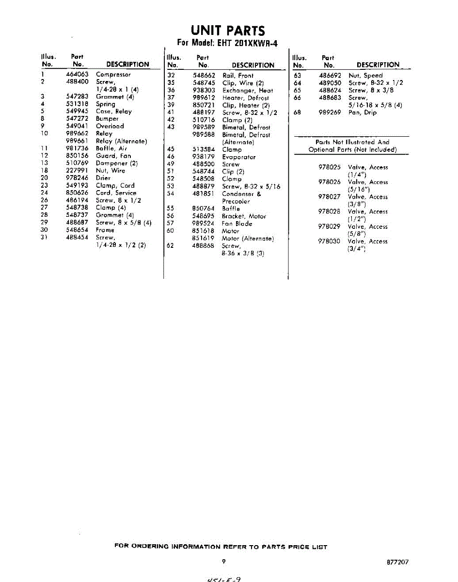 Parts for Whirlpool EHT201XKWR4: 09 - Section Parts