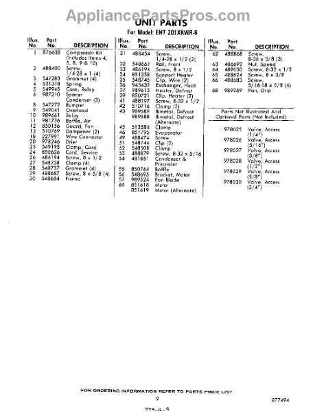 Parts for Whirlpool EHT201XKWR6: 09 - Section Parts