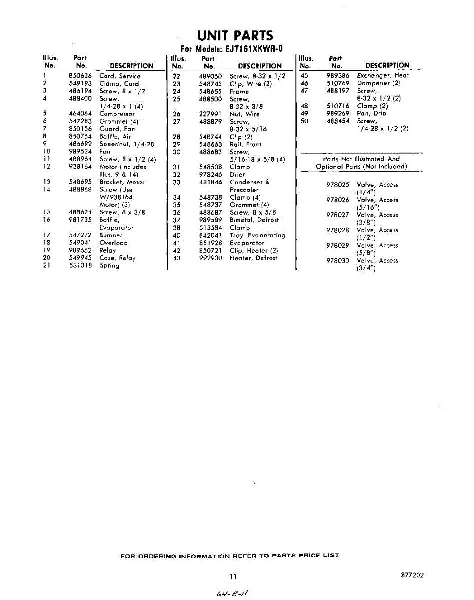 Parts for Whirlpool EJT161XKWR0: 11 - Section Parts