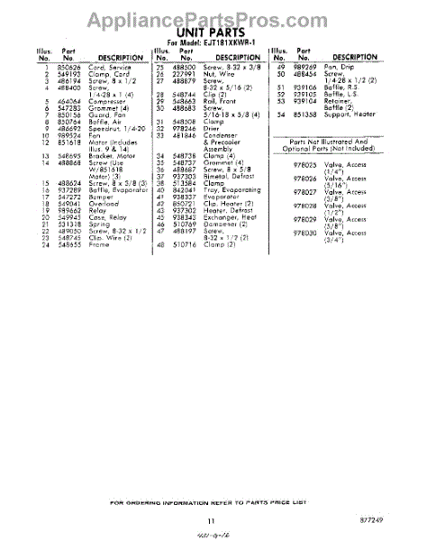 Parts for Whirlpool EJT181XKWR1: 11 - Section Parts