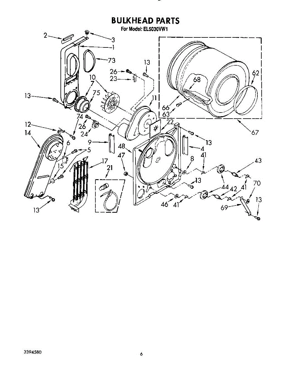 Replacement drum front bulkhead for dryers. Installs at the front of the drum assembly. Needed when original is cracked, damaged, or worn out.