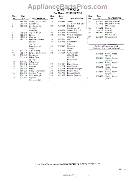 Parts for Whirlpool ET141EKLWR0: 11 - Section Parts