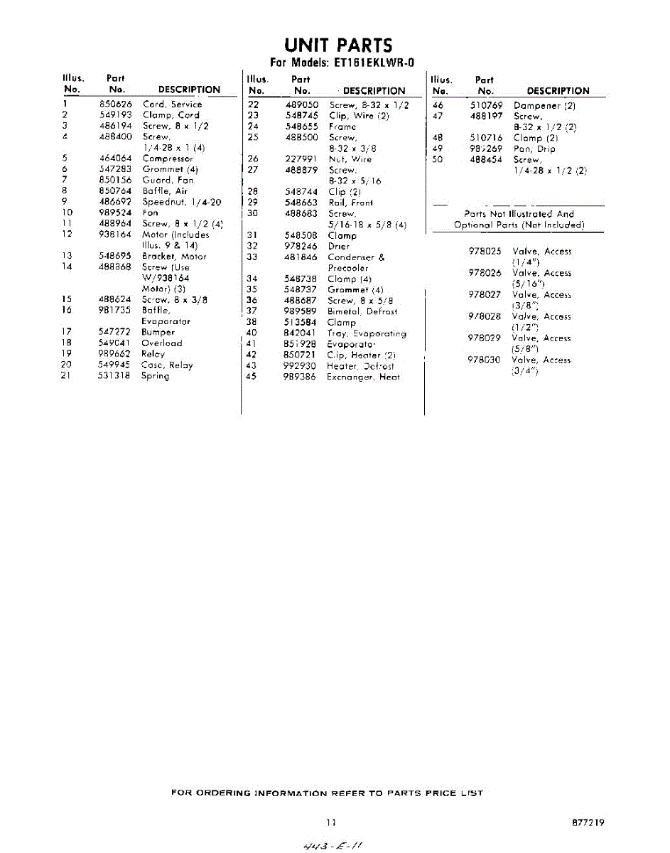 Parts for Whirlpool ET161EKLWR0: 11 - Section Parts