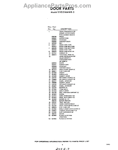 Parts for Whirlpool EVD21MMWR0: 09 - Section Parts