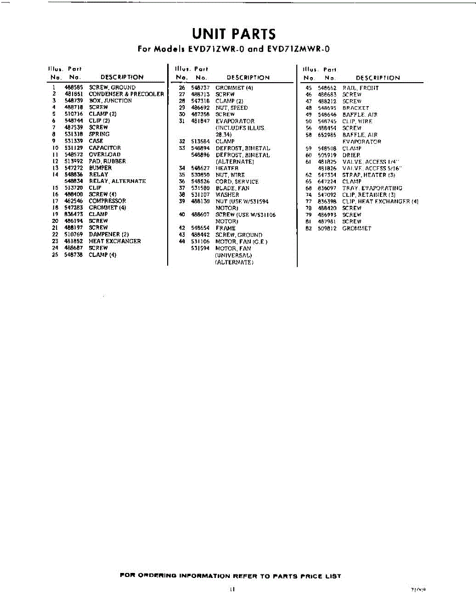 Parts for Whirlpool EVD71ZMWR0: 11 - Section Parts