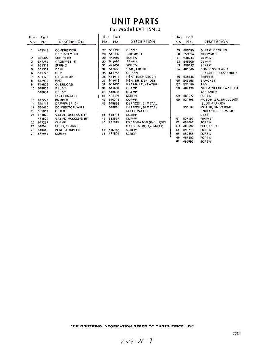 Parts for EVT15NWR0