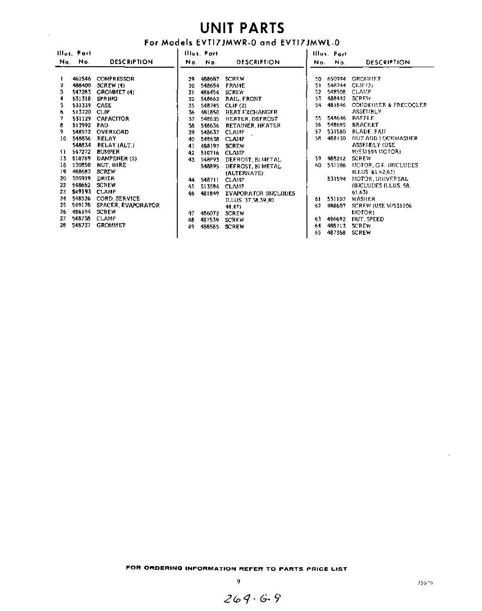 Parts for Whirlpool EVT17JMWR0: 09 - Section Parts