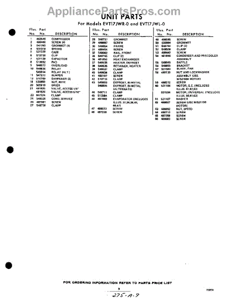 Parts for EVT17JWR0