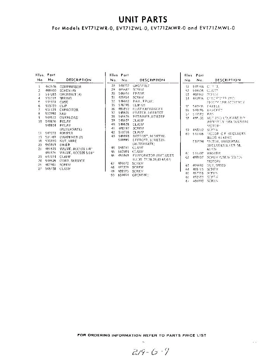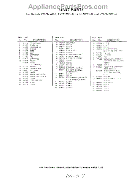 Parts for Whirlpool EVT71ZWR0: 09 - Section Parts