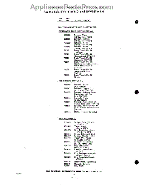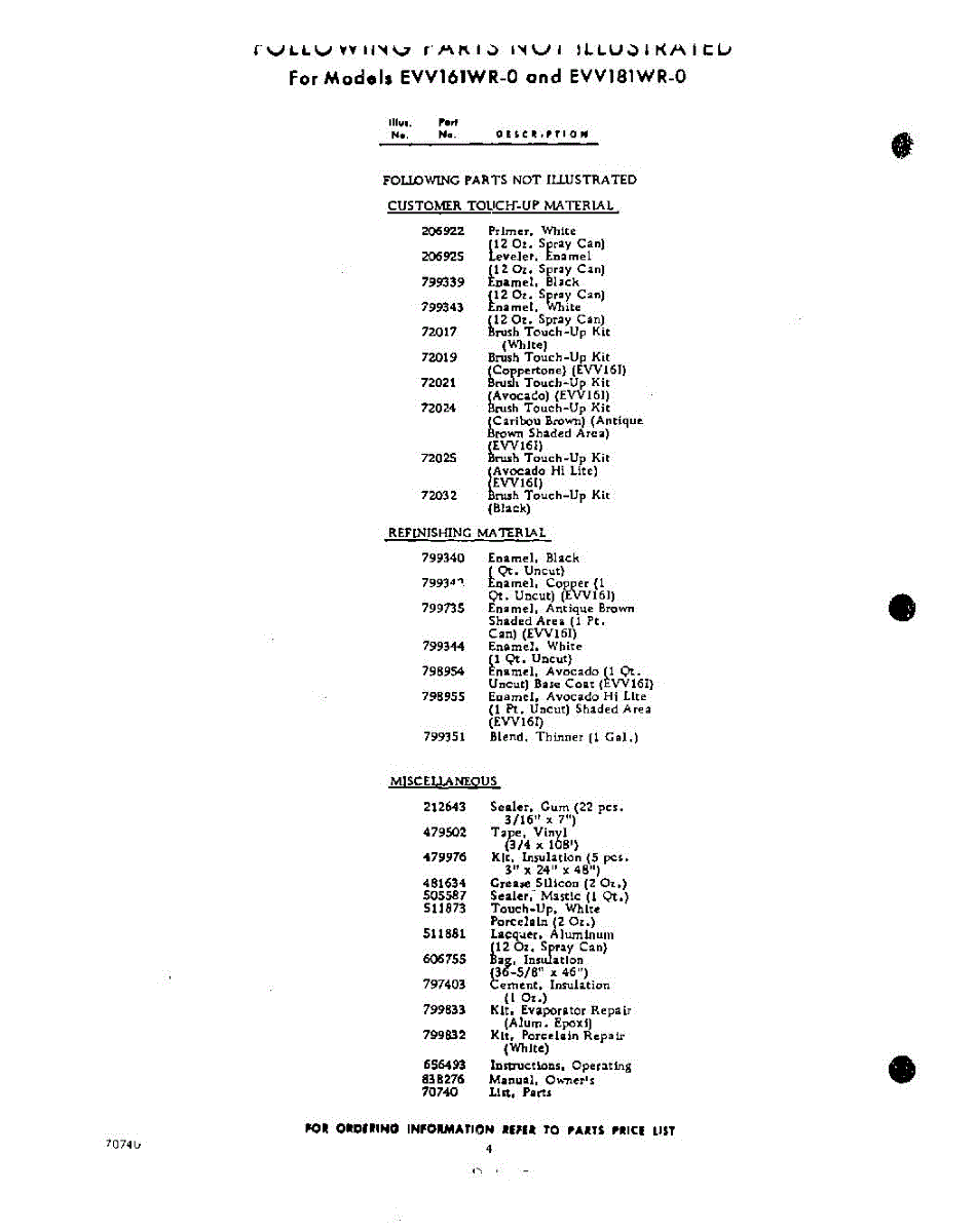 Parts for EVV18IWR0