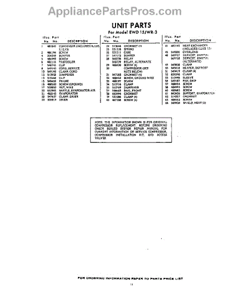 Parts for EWD15JWR3