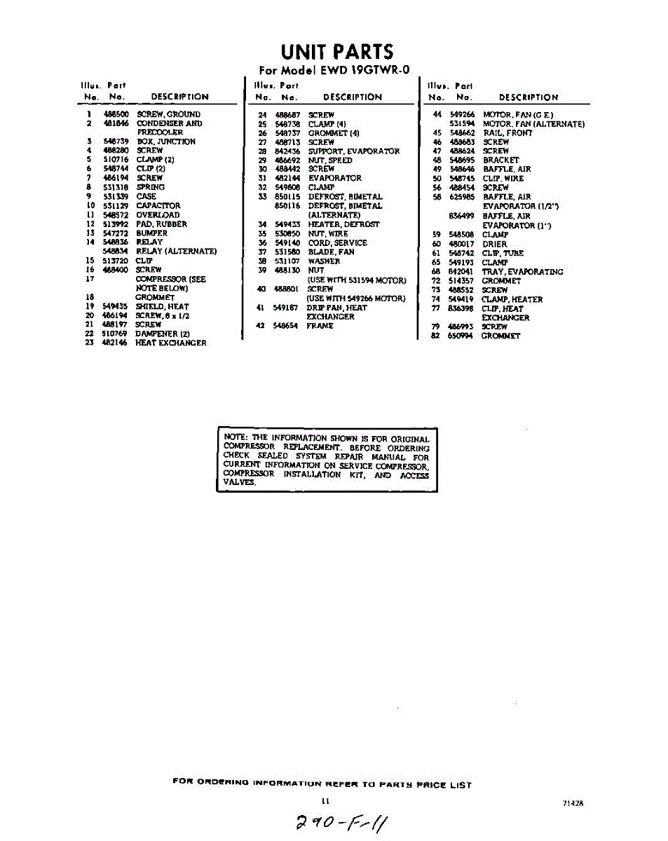 Parts for EWD19GTWR0