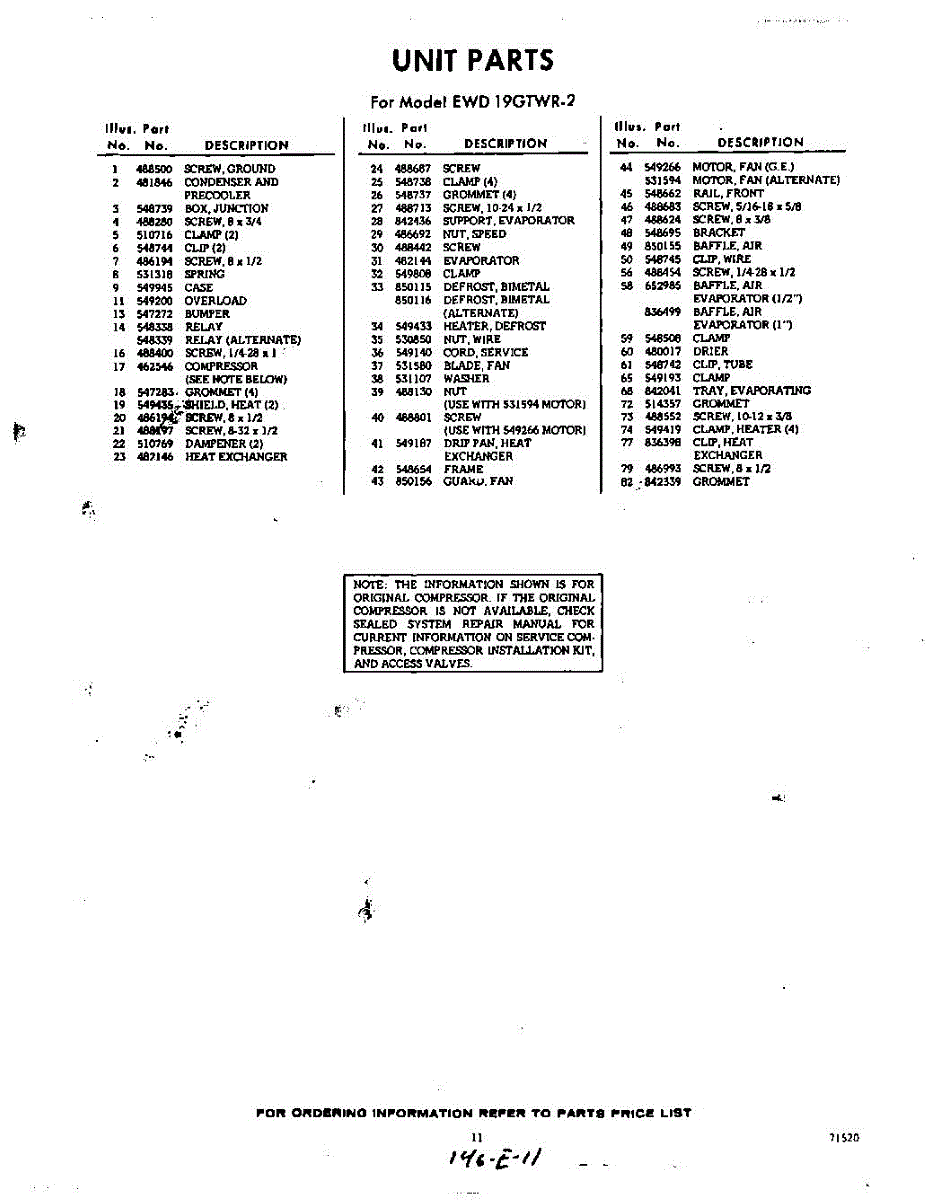 Parts for EWD19GTWR2