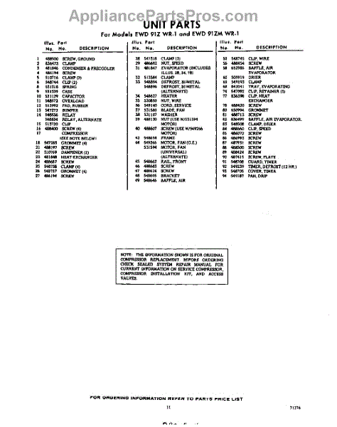 Parts for EWD91ZWR1