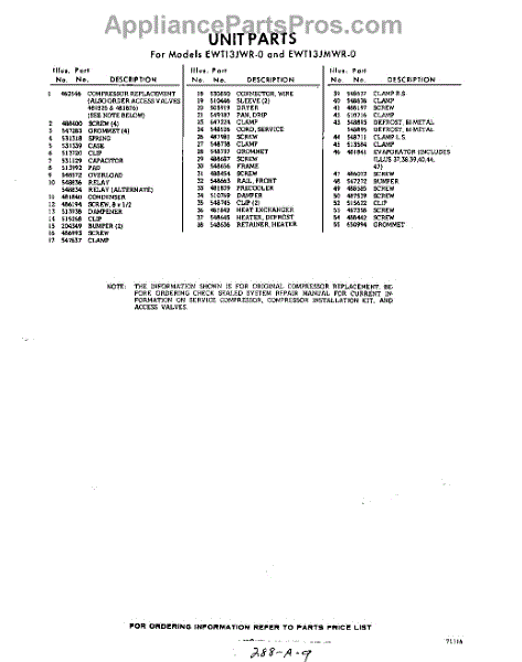 Parts for EWT13JWR0