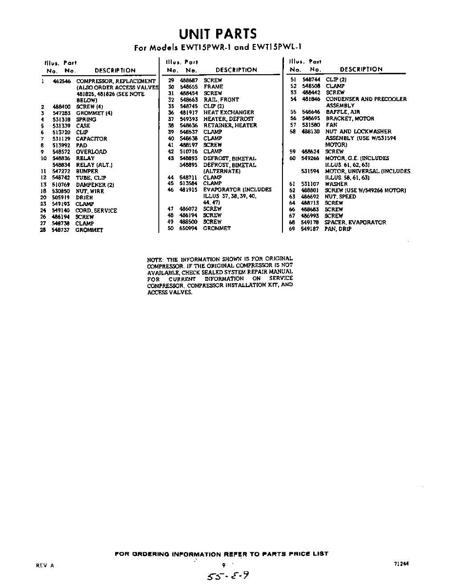 Parts for EWT15PWR1