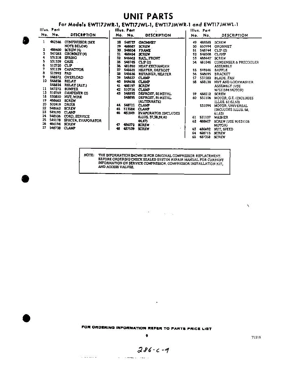 Parts for EWT17JWR1