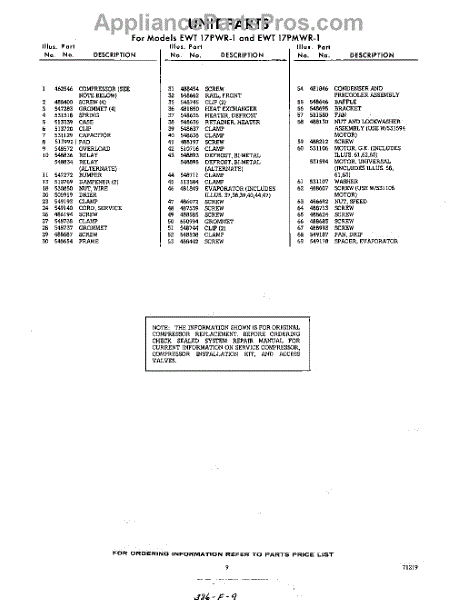 Parts for EWT17PWR1