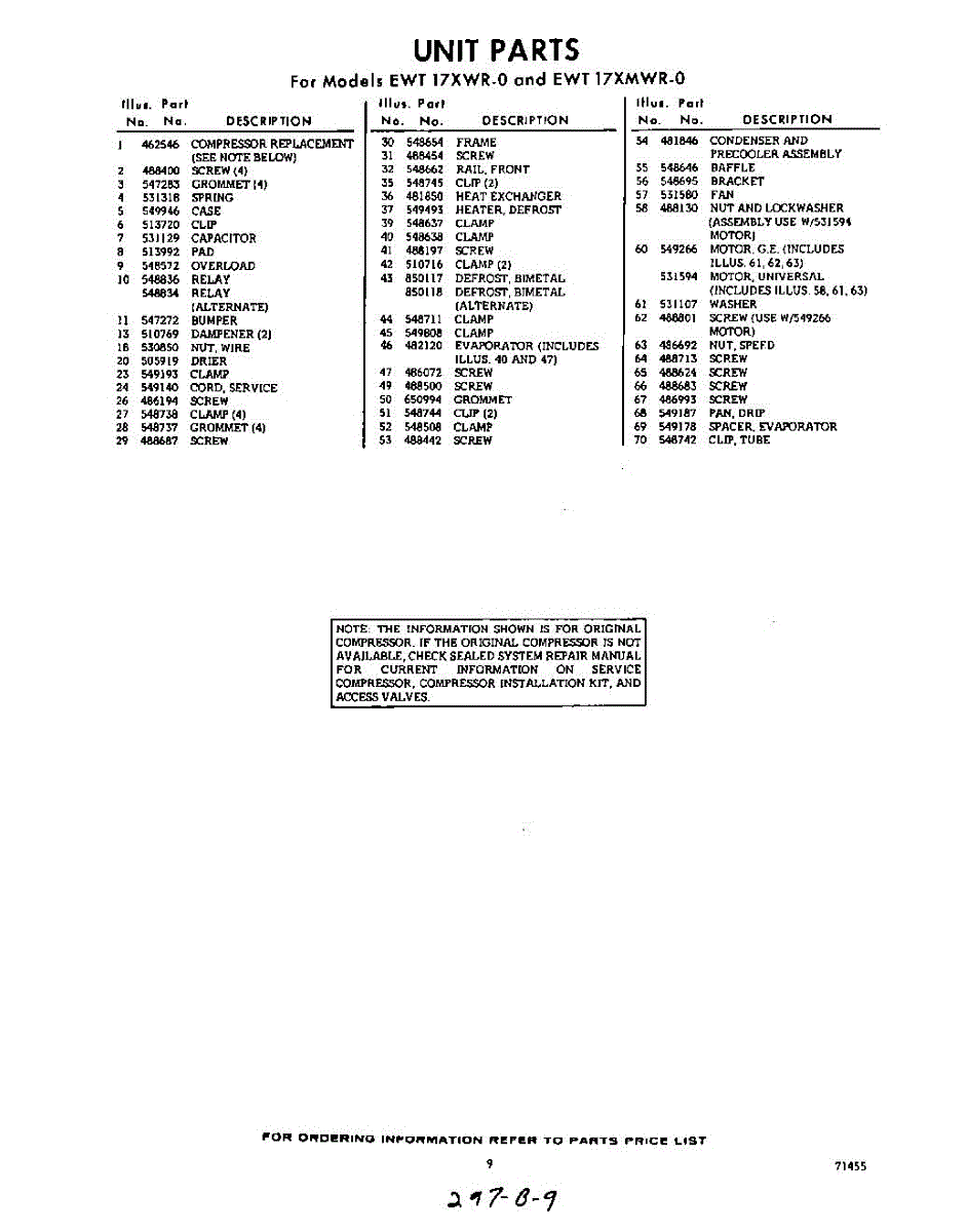Parts for EWT17XWR0