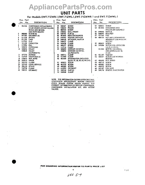 Parts for EWT71ZMWR1
